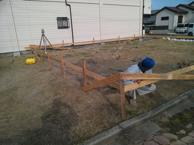 地鎮祭後は位置出しをして着工します。
